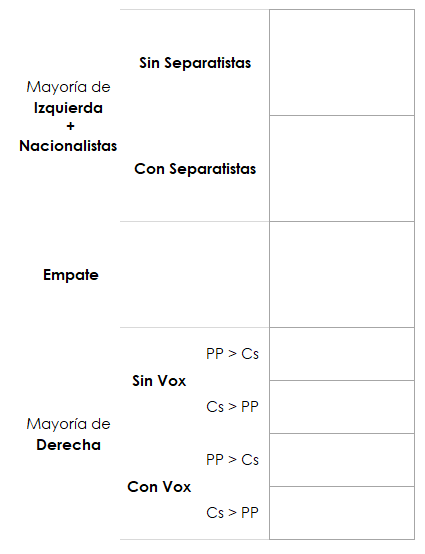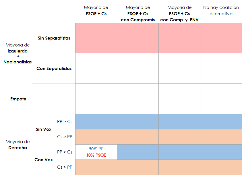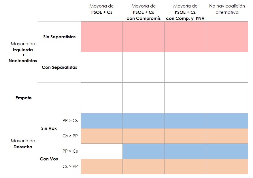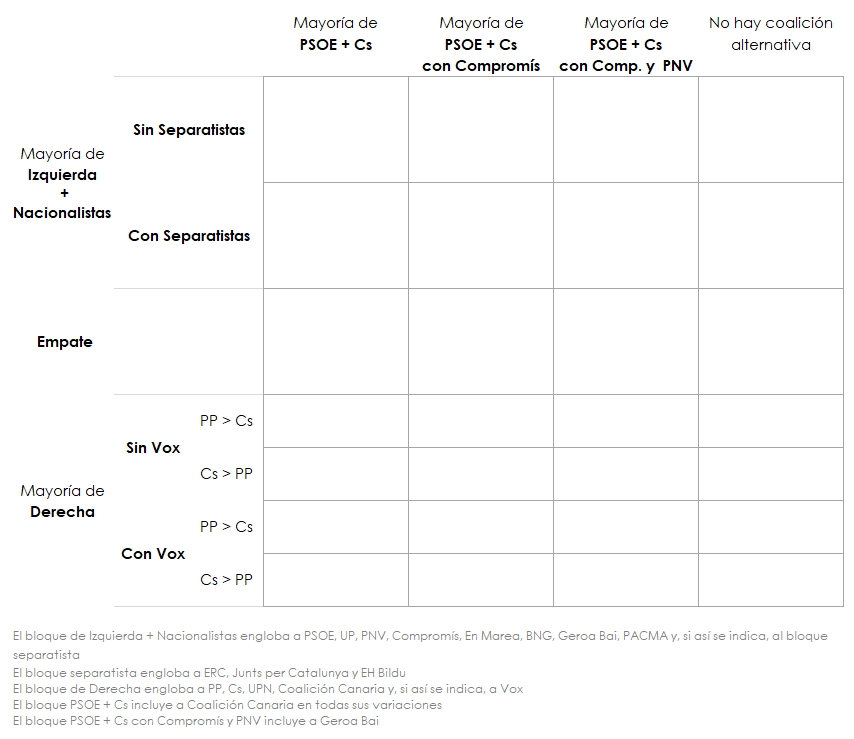 Este mapa indica 28 escenarios posibles. El día después de las elecciones estaremos en uno de esos 28 cuadrados.