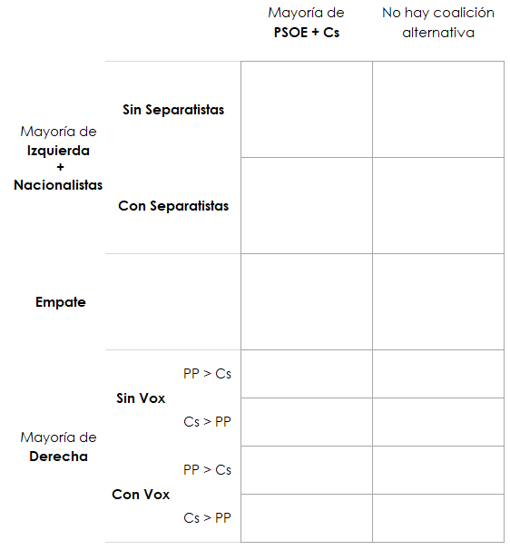 El objetivo es crear una clasificación de todos los escenarios post-electorales. Esa clasificación debe ser lo más relevante posible de cara a predecir una futura investidura.